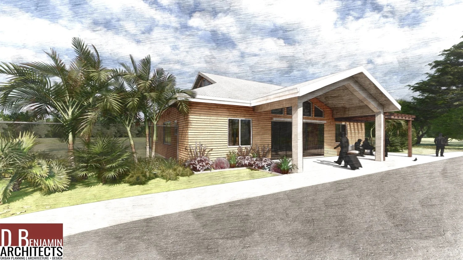 Picture 3 – The new Fixed Base Operator (FBO) serves private jets at Barbuda’s runway, where apron lighting is to be installed to allow evening arrivals. (Benjamin Architects photo)
