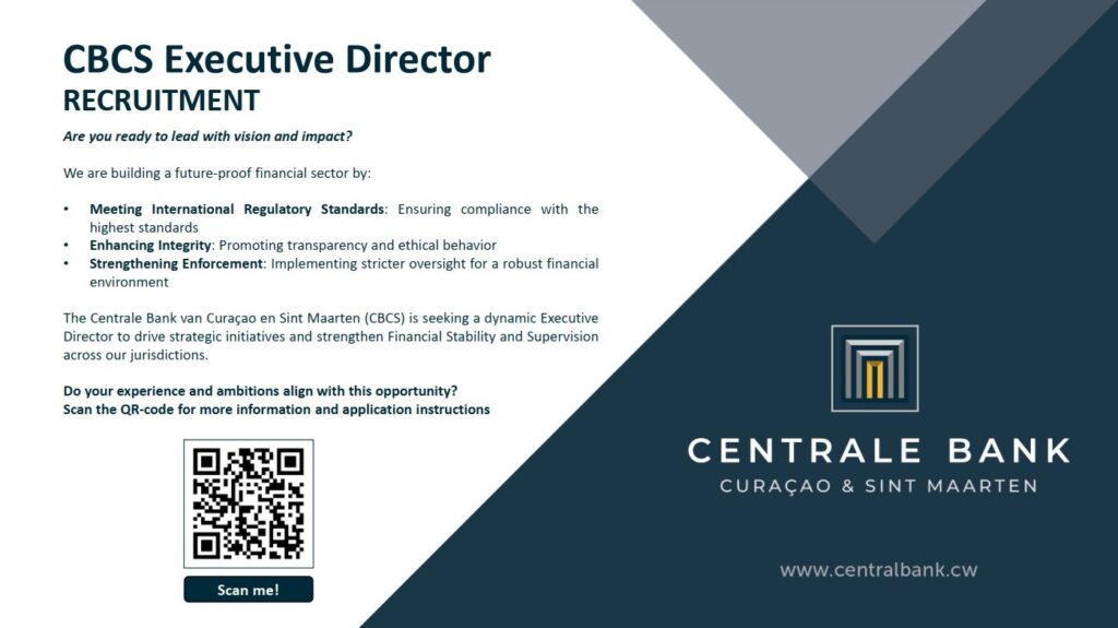 The Centrale Bank van Curaçao & Sint Maarten (CBCS) is recruiting an Executive Director to lead strategic initiatives and strengthen financial stability and supervision across its jurisdictions, with a focus on regulatory standards, integrity, and enforcement.